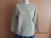 kemru 天竺ボーダーボートネック長袖Tシャツ ライトグリーン