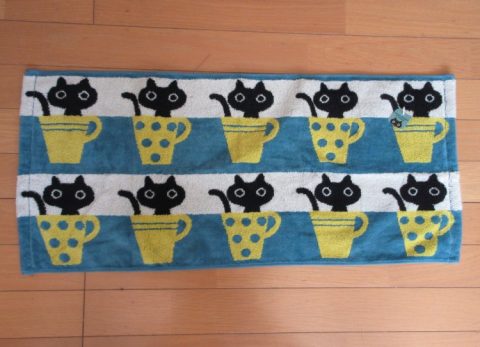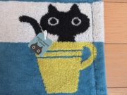 黒猫のMEMEがカップからひょっこり顔を出しています。なんともキュートナテキスタイルです。ふんわりした素材感やいたずらっぽい尻尾、大人可愛い色使いなど、キュンとする魅力がたっぷりです。手に取るたびにちょっとハッピーになれる、とっておきのタオルです。目につく場所にかけておくものだから、それだけでお部屋がぱっと華やかになるように仕上げました。安心の今治製で吸水性抜群です。