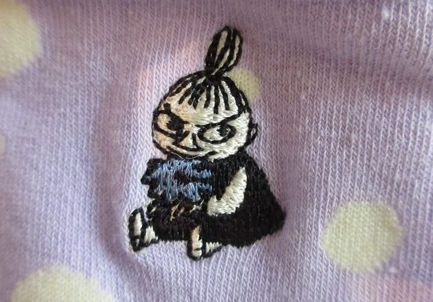 ← ウイックス ランダムドット ミィ刺繍 ロークルーソックス パープル