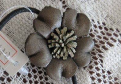 レザーヘアゴム フラワーA グリーン