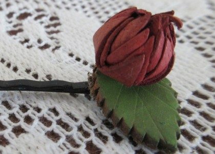 レザーヘアピン ロータス レッド