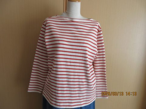 kermu ベビー天竺ボーダーボートネック長袖Tシャツ オレンジ