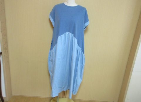 LUPILIEN 16Sインディゴ天竺ドッキングデニムワンピース
