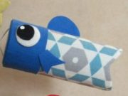 ニュアンスカラーの幾何学芋用の生地を用いて作った鯉のぼりです。飾りやすい卓上スタンドタイプです。